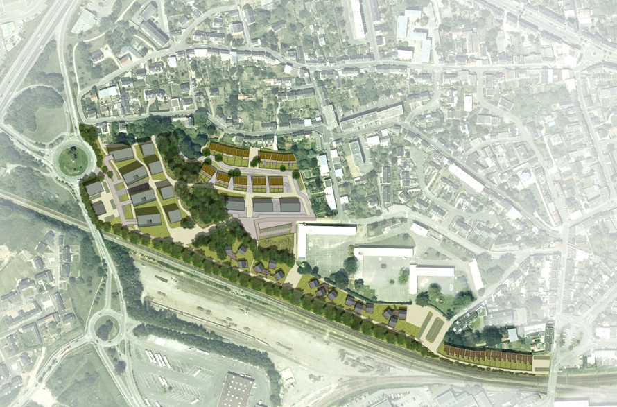 mission d'études d'aménagement urbain de l'écoquartier _ surface aménagée : 5,2 ha _ constructibilité : 40.000 m2 SU _ programme de 300 logements, commerces et espaces publics paysagers
